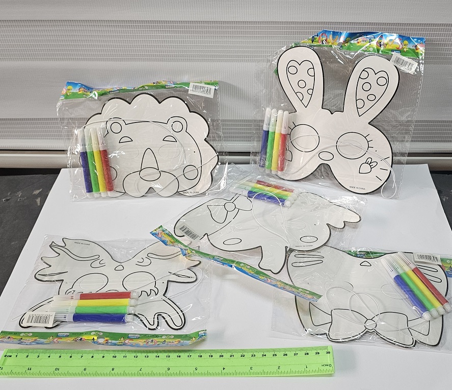 מסכה ליצירה מקרטון עם טושים. מקרטון. גמיש וחזק. נצבעת בקלות. מגיע עם מארז טושים לכל מסכה. עם גומי מחוזק להתאמה מרבית לכל ראש. מתאים. להצגות. תחפושות. ולמשחקים היתוליים. מוצר איכותי, מגיע בשלל דוגמאות. בחירת הדוגמה נעשית באופן אקראי.