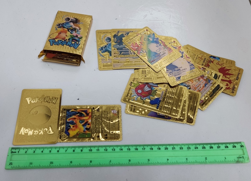 קלפי פוקימון מוזהבים | Pokémon | מארז 30 קלפים, חפיסה מלאה של 30 קלפים, צבע זהב, מקרטון עם ציפוי למינציה, מגיע בשלל צבעים ודוגמאות, בחירת הצבע והדוגמה נעשית באופן אקראי,